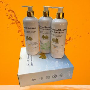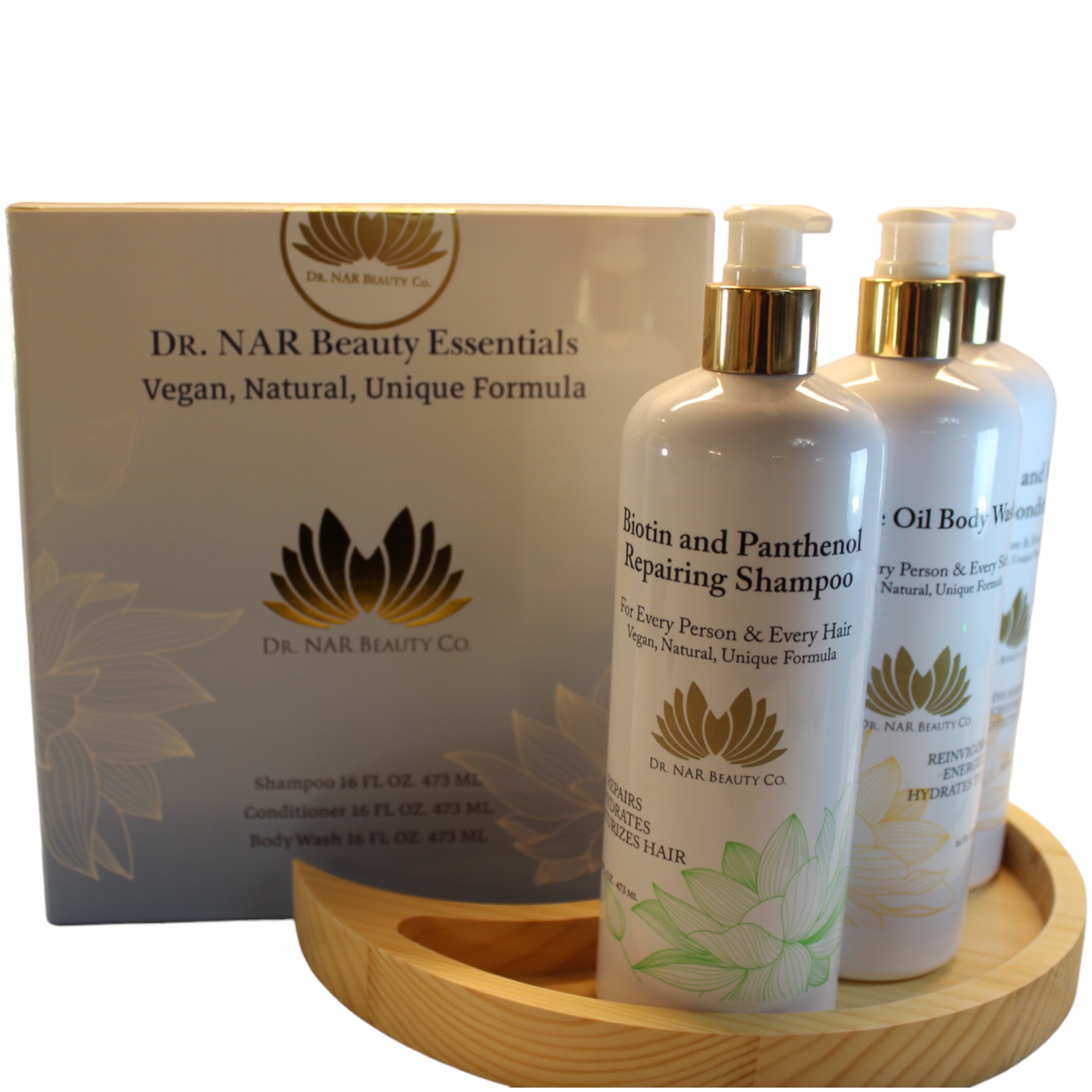 - Dr. NAR Beauty essential set, a vegan beauty collection that includes a body wash a sulfate-free shampoo and conditioner, formulated to provide hydration and nourishment for your hair and skin.